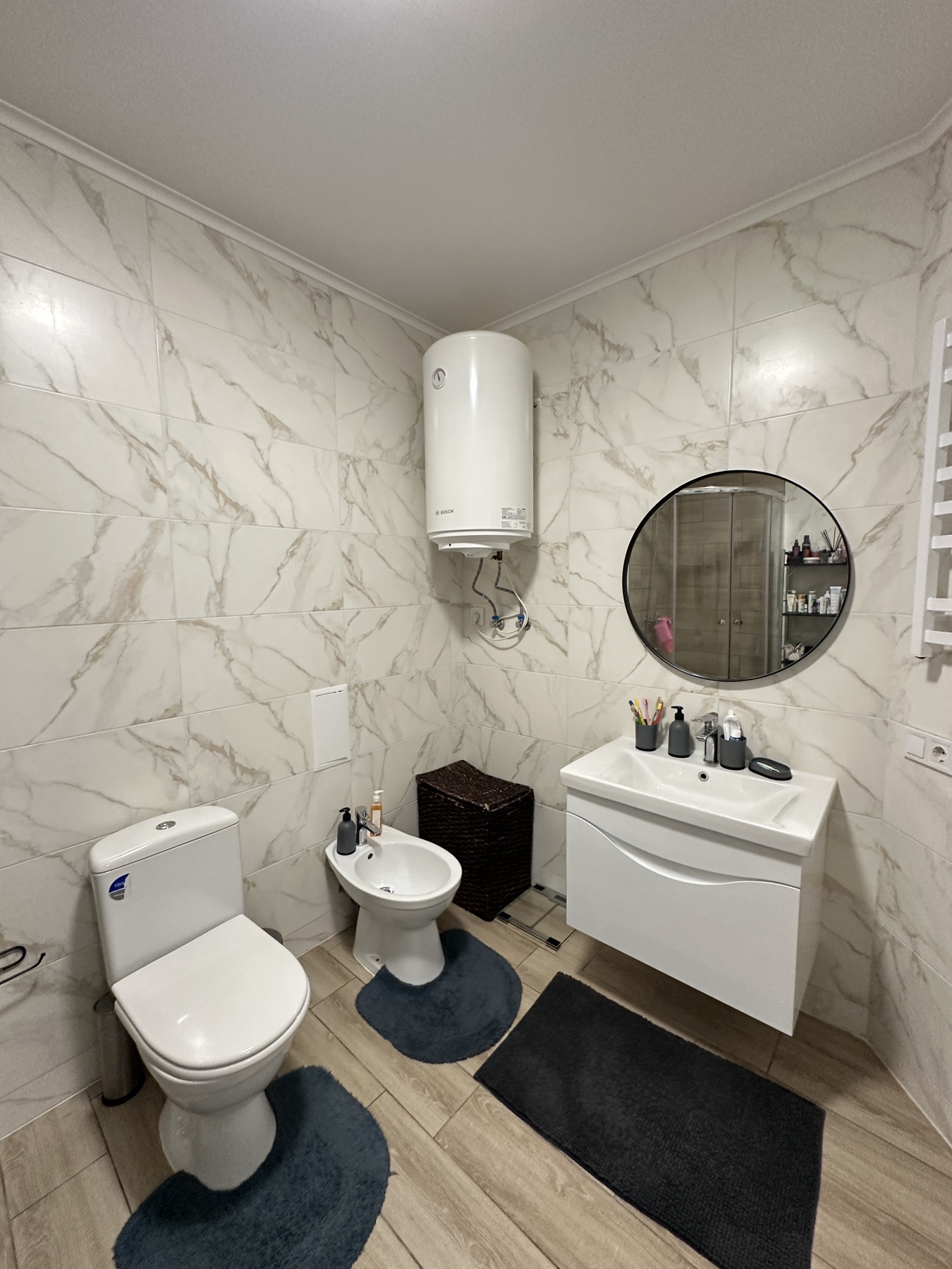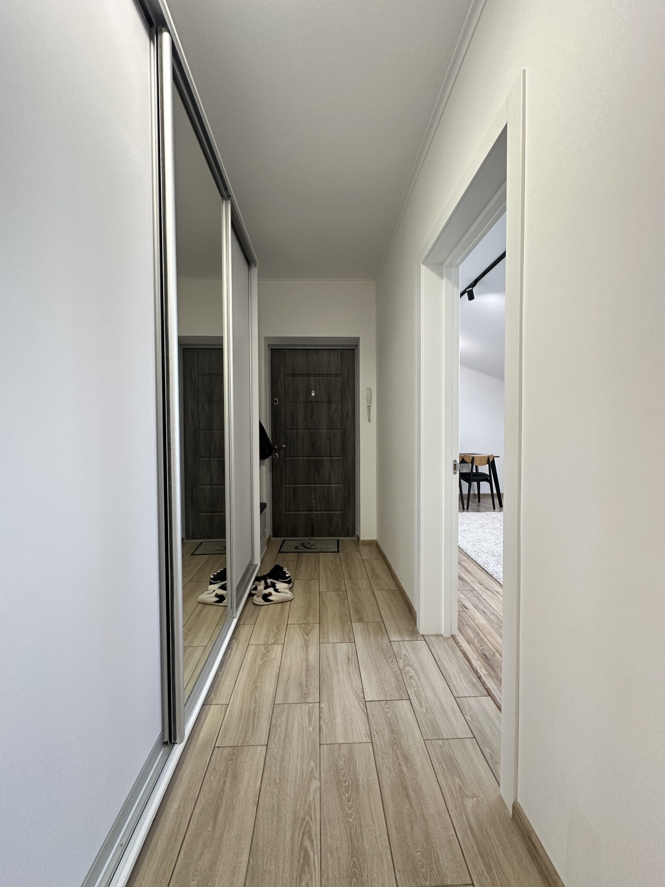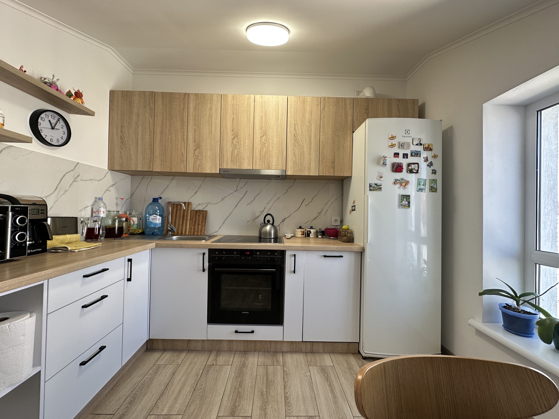 2 окремі спальні та простора кухня-вітальня. Також у квартирі є велика кладовка.