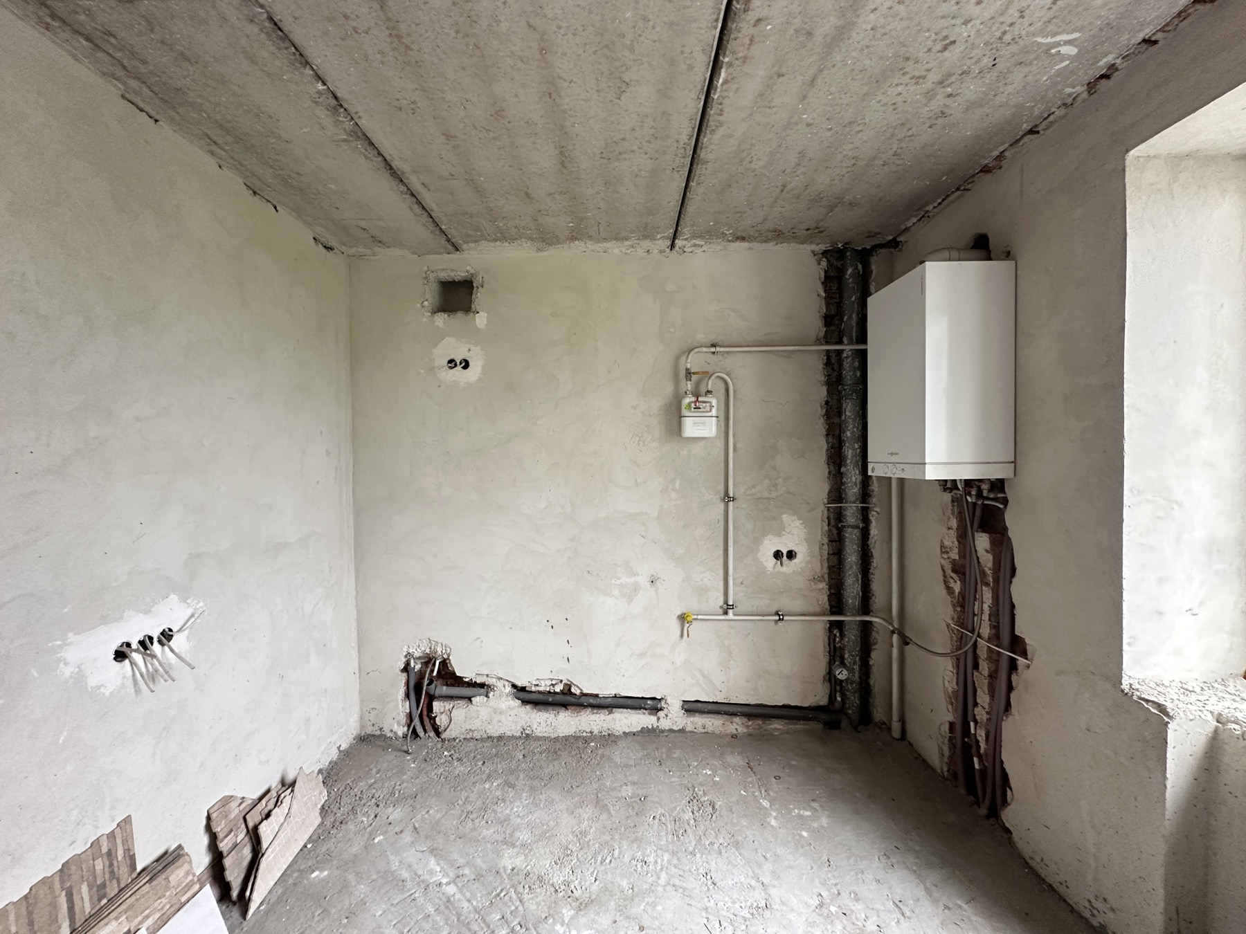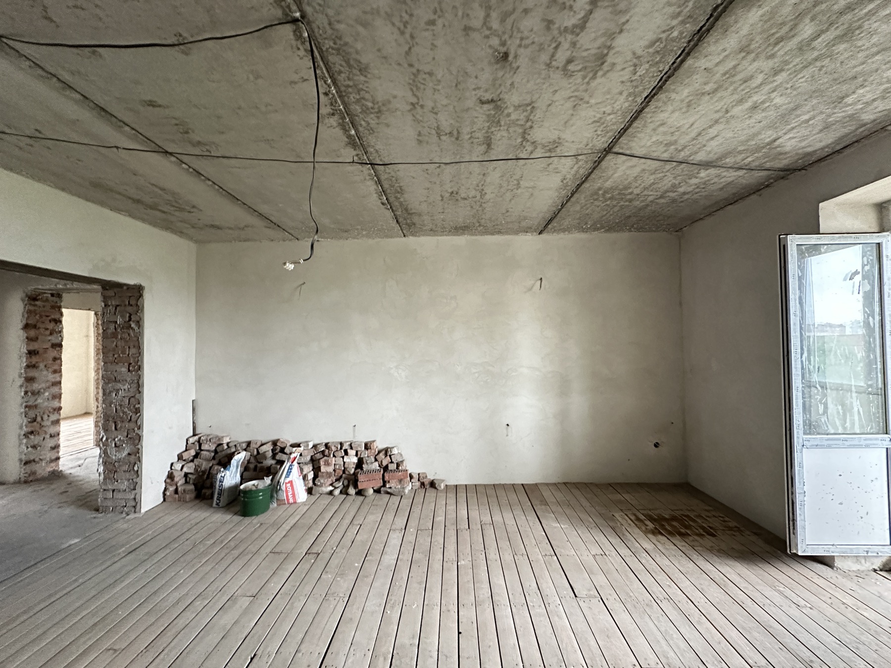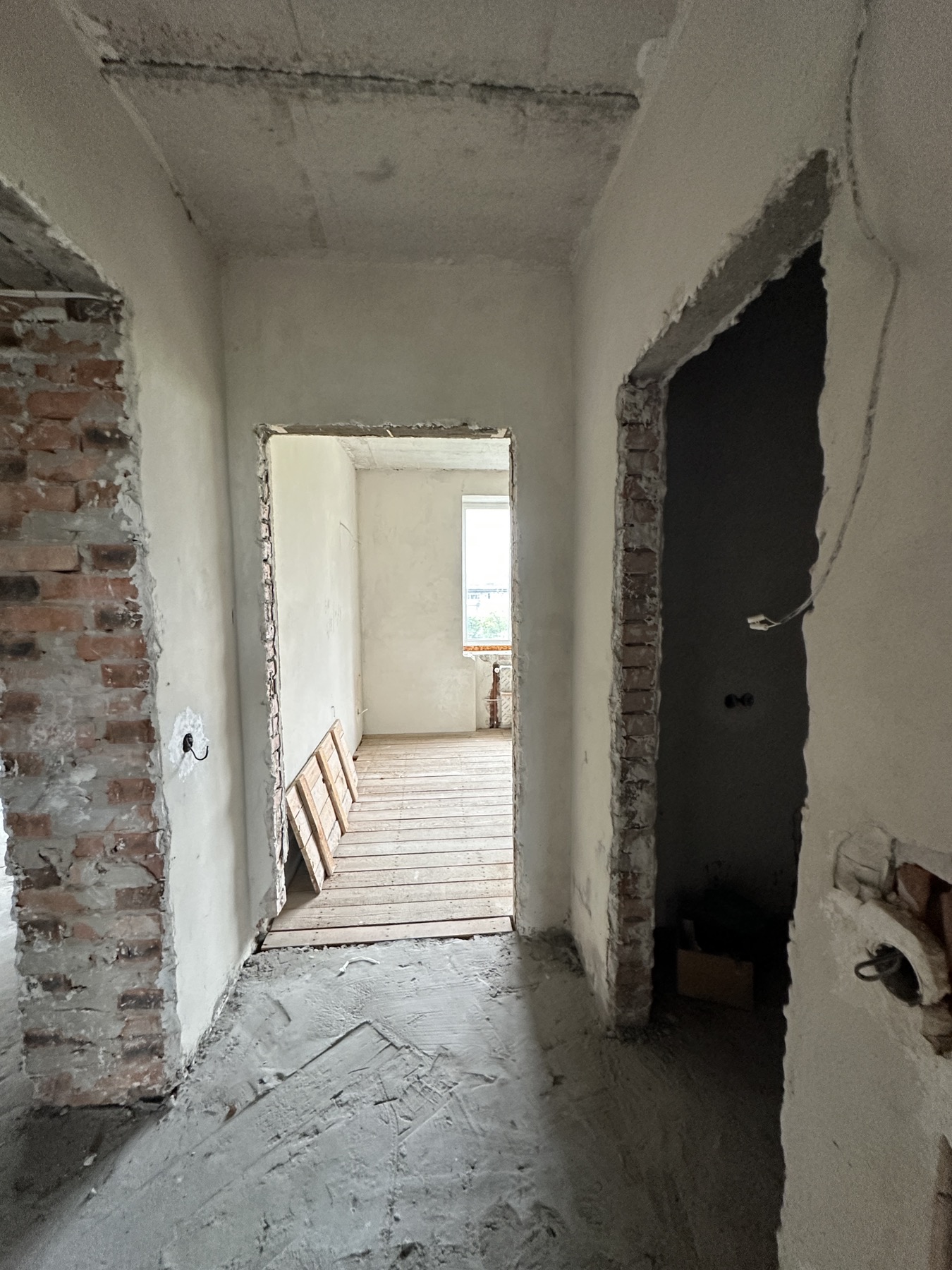 Зроблена електрика, сантехніка, опалення, підігрів у мокрих зонах та залита чистова стяжка.