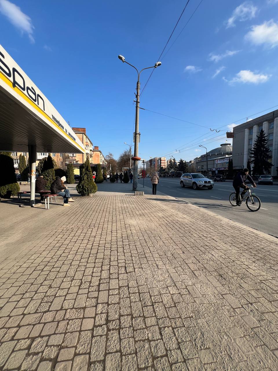 Вул. Незалежності, зупинка поруч з кінотеатром “Космос”